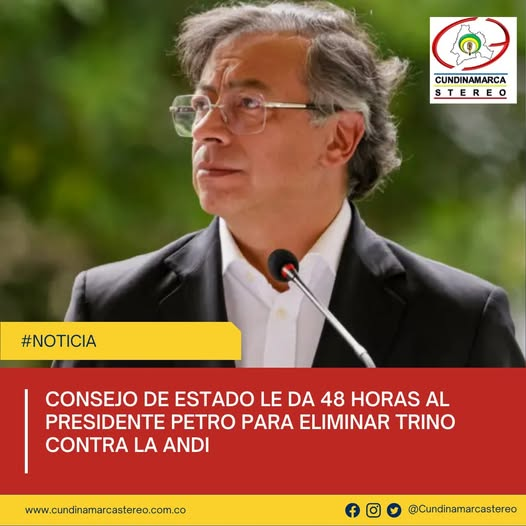 El Consejo de Estado le da 48 horas al presidente Gustavo Petro para eliminar trino contra la ANDI. La decisión del alto tribunal se da tras revocar un fallo anterior que había negado la tutela interpuesta por la ANDI para el Consejo de Estado las expresiones del mandatario excedieron los límites de la libertad de expresión y constituyeron una “imputación de hecho sin sustento fáctico ni probatorio”.