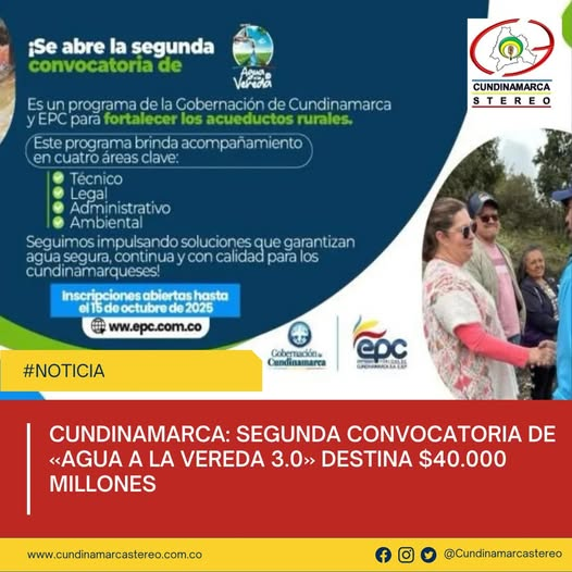 La Gobernación de Cundinamarca, en un esfuerzo conjunto y coordinado con Empresas Públicas de Cundinamarca (EPC), ha anunciado la apertura oficial de la segunda convocatoria del programa “Agua a la Vereda 3.0”.