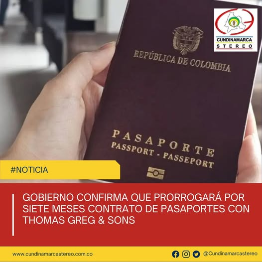 En medio de la transición tecnológica que dará paso a un nuevo modelo en la emisión de pasaportes en Colombia, el Gobierno Nacional confirmó que prorrogará por siete meses el contrato actual con la unión temporal encabezada por Thomas Greg & Sons.