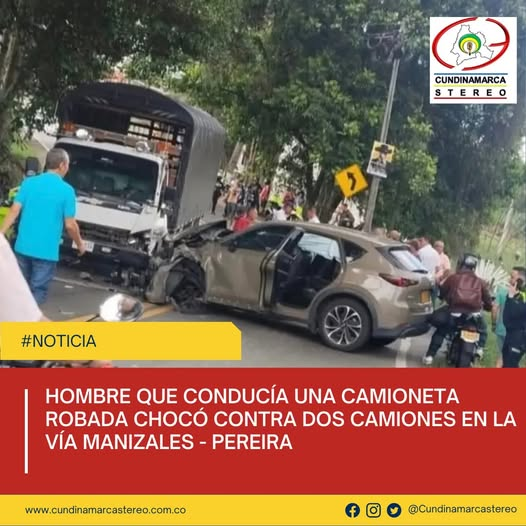 Hombre que conducía una camioneta robada chocó contra dos camiones en la vía Manizales – Pereira