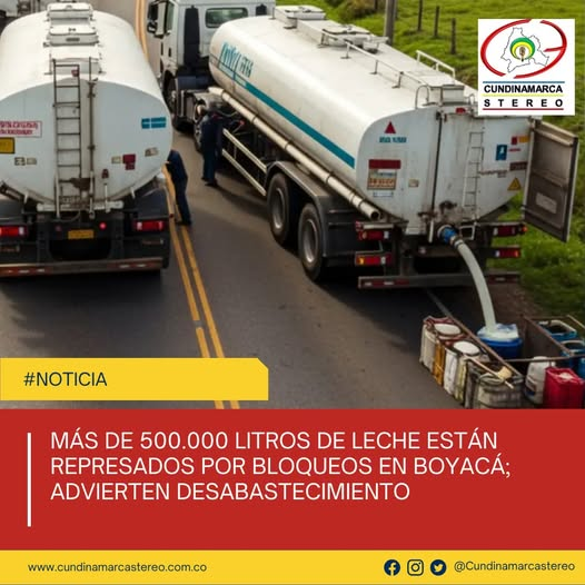 Pérdida de leche: Alrededor de 500.000 litros de leche están en peligro de dañarse al no poder llegar a las plantas procesadoras en Cundinamarca y otras regiones. Los tanques de enfriamiento en las zonas de acopio ya han alcanzado su capacidad máxima, lo que significa que la leche del ordeño de la tarde y de los próximos días no podrá ser recolectada ni procesada si los bloqueos persisten.