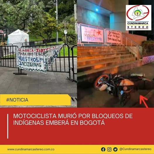 Un joven motociclista de 23 años perdió la vida en la madrugada de este fin de semana en Bogotá, después de estrellarse contra una barricada improvisada por miembros de la comunidad indígena emberá en la carrera Séptima con calle 39, en un hecho que volvió a generar controversia en la capital por las condiciones en las que se produjo el accidente.